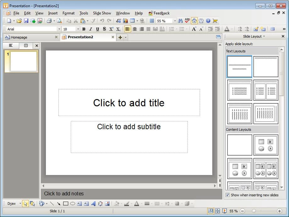 このプログラムは、他のどのスイートよりもハードディスクの容量をほとんど消費しません。シンプルで使いやすいインターフェースにより、230種類のフォントと複数のテンプレートを活用してアプリケーションをカスタマイズできます。ドロップ&ドラッグやサイズ変更機能を使って、形状やフォーマットを変更できます。タブを使用して、複数の種類のドキュメントを開くこともできます。タブバーでは、Ctrl + Tabキーを押すことでドキュメントを編集できます。